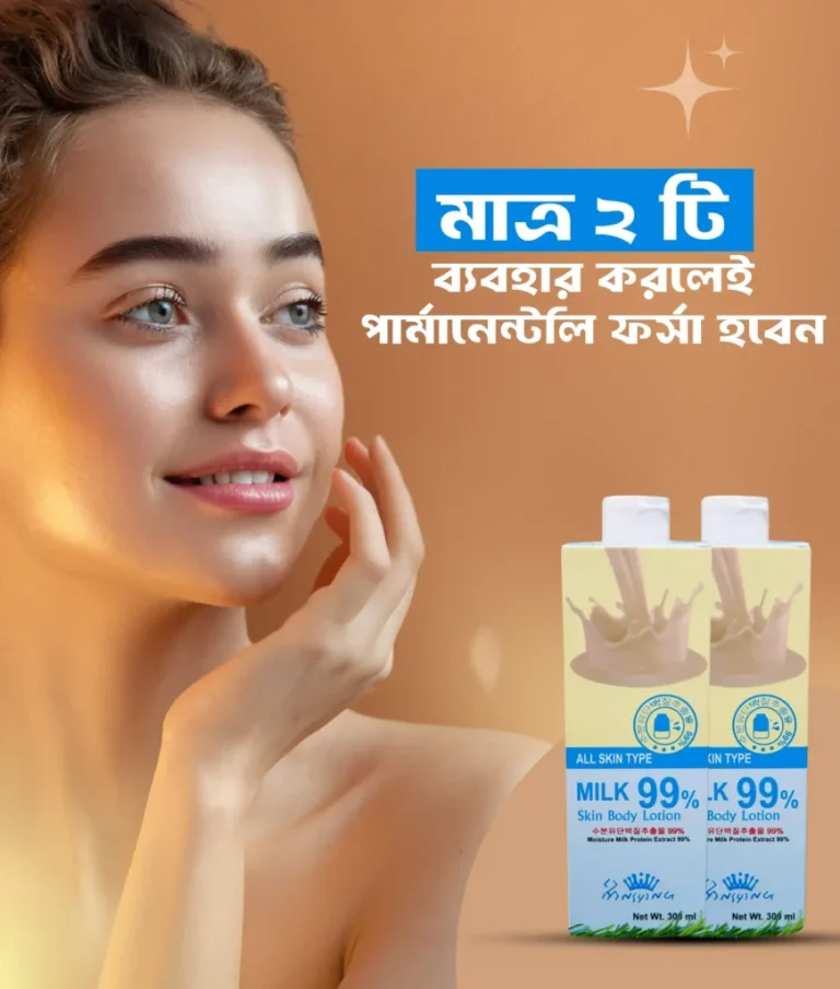 পার্মানেন্ট ফর্সা হওয়ার জন্য 🥰MILK 99% BODY LOTION ( ২ টি ) ব্যবহার করতে হয়
